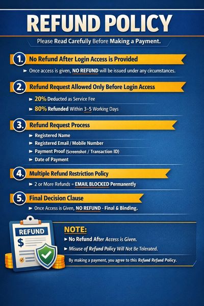 We request all users to verify the service details carefully before making payment. Once payment is made, it will be considered that the user has read, understood, and accepted this Refund Policy.